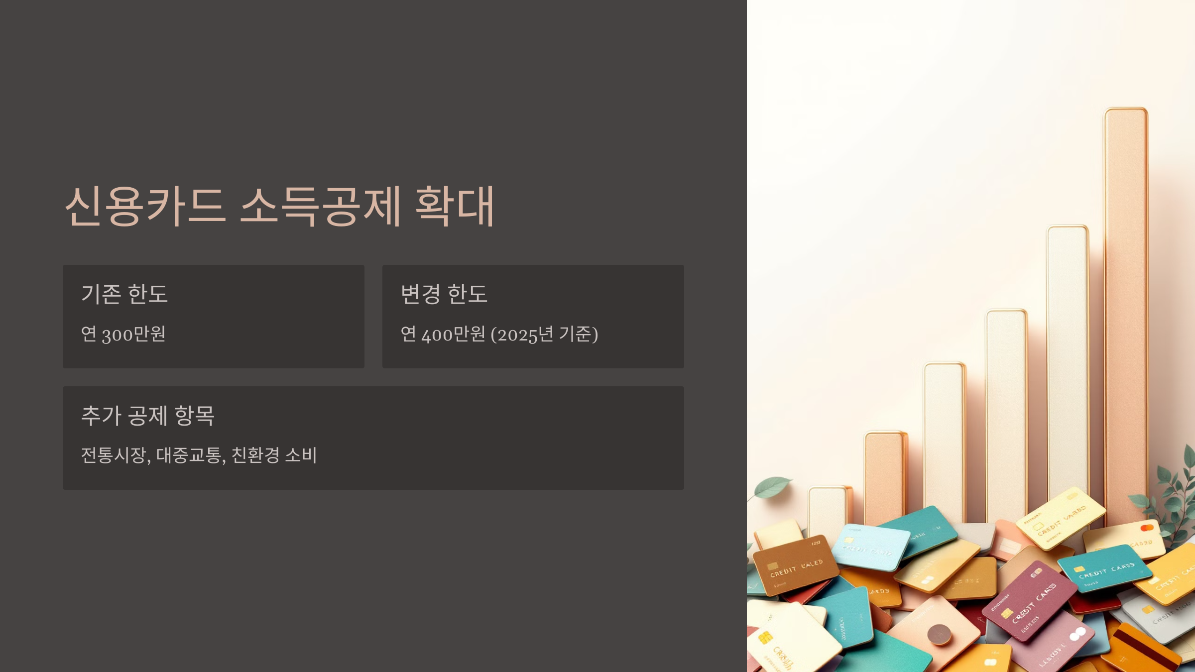 1️⃣ 신용카드 소득공제 한도 확대 📈