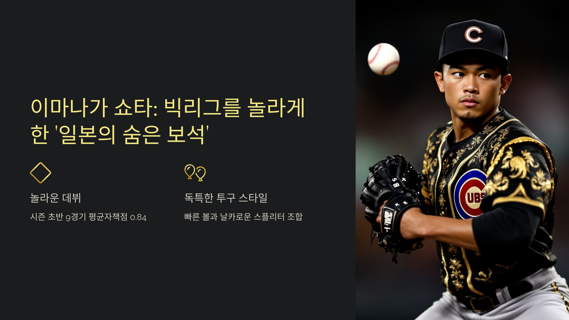 시카고 컵스의 이마나가 쇼타는 2024 시즌 MLB에 데뷔하자마자 리그를 놀라게 했습니다. 시즌 초반 9경기 동안 평균자책점 0.84라는 믿기 힘든 성적을 기록했죠. 이는 1920년 이후 시즌 첫 9경기 등판 기준 역대 4번째로 낮은 평균자책점입니다. 🤯