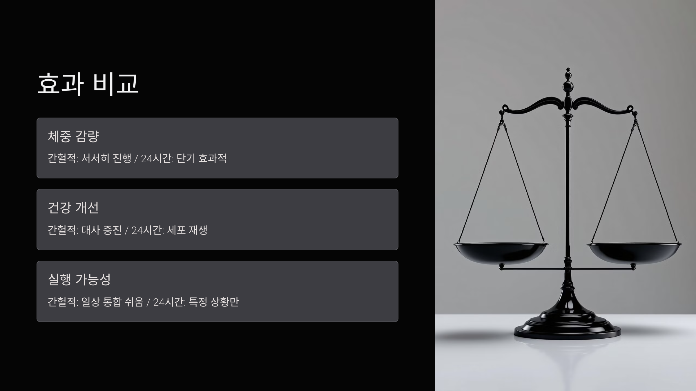 3. 효과 비교: 간헐적 단식 vs 24시간 단식