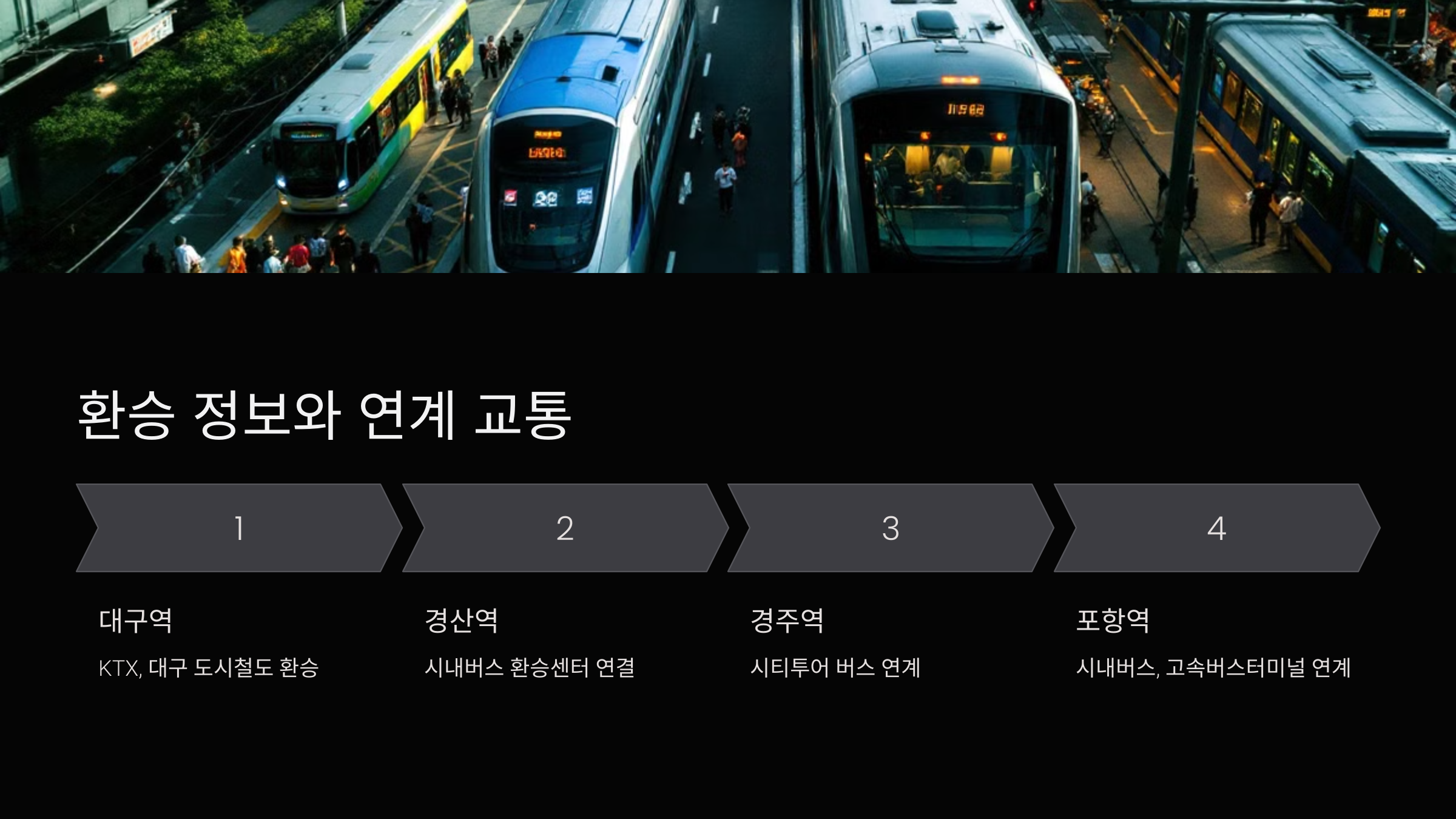 • 포항역: 시내버스 및 고속버스터미널 연계