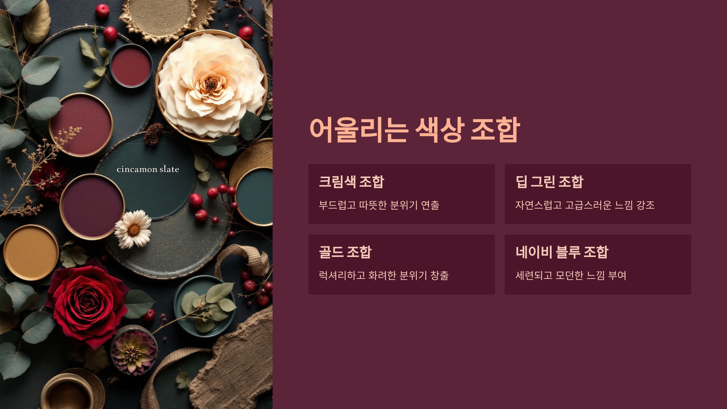 4. 시나몬 슬레이트와 어울리는 색상 조합 🌈
