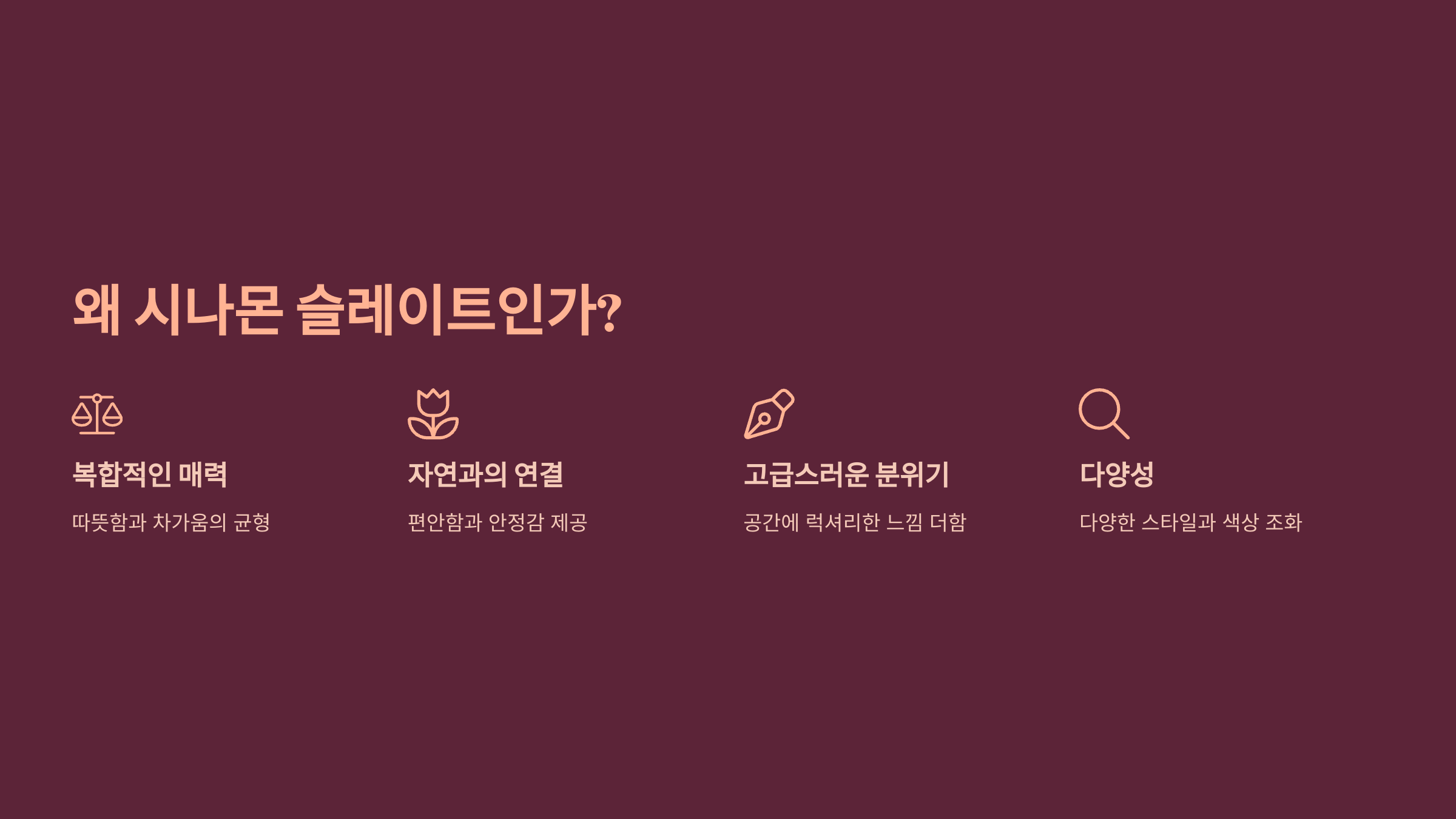 Q2: 시나몬 슬레이트와 어울리는 소재나 텍스처가 있나요?