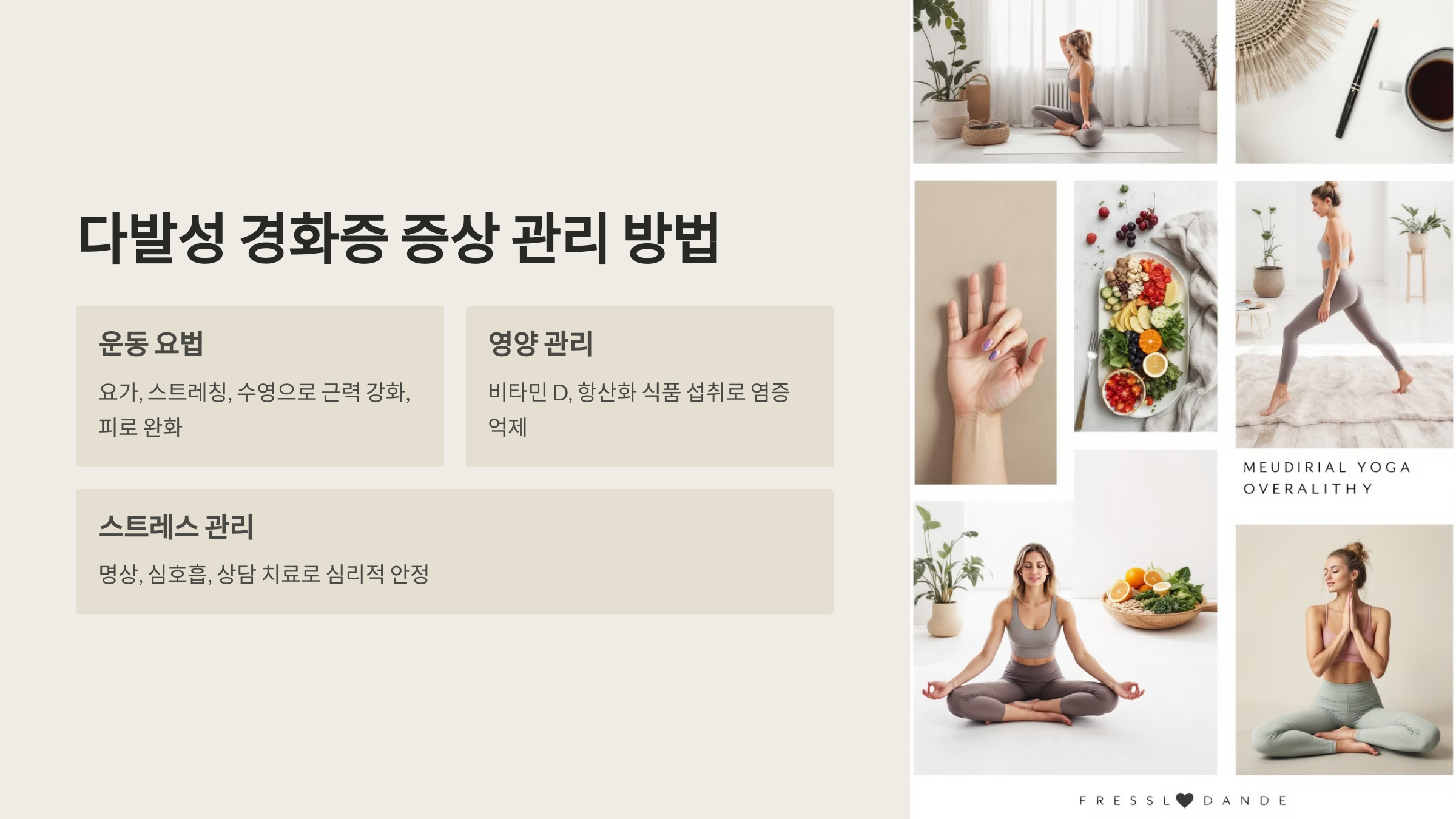 • 추천 운동: 요가, 스트레칭, 수영