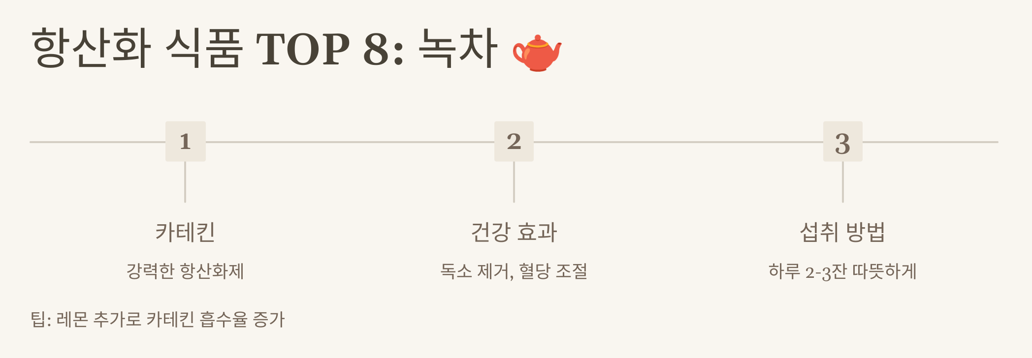 👉 Tip: 녹차에 레몬 한 조각을 넣으면 비타민 C가 카테킨의 흡수를 더욱 높여줍니다.